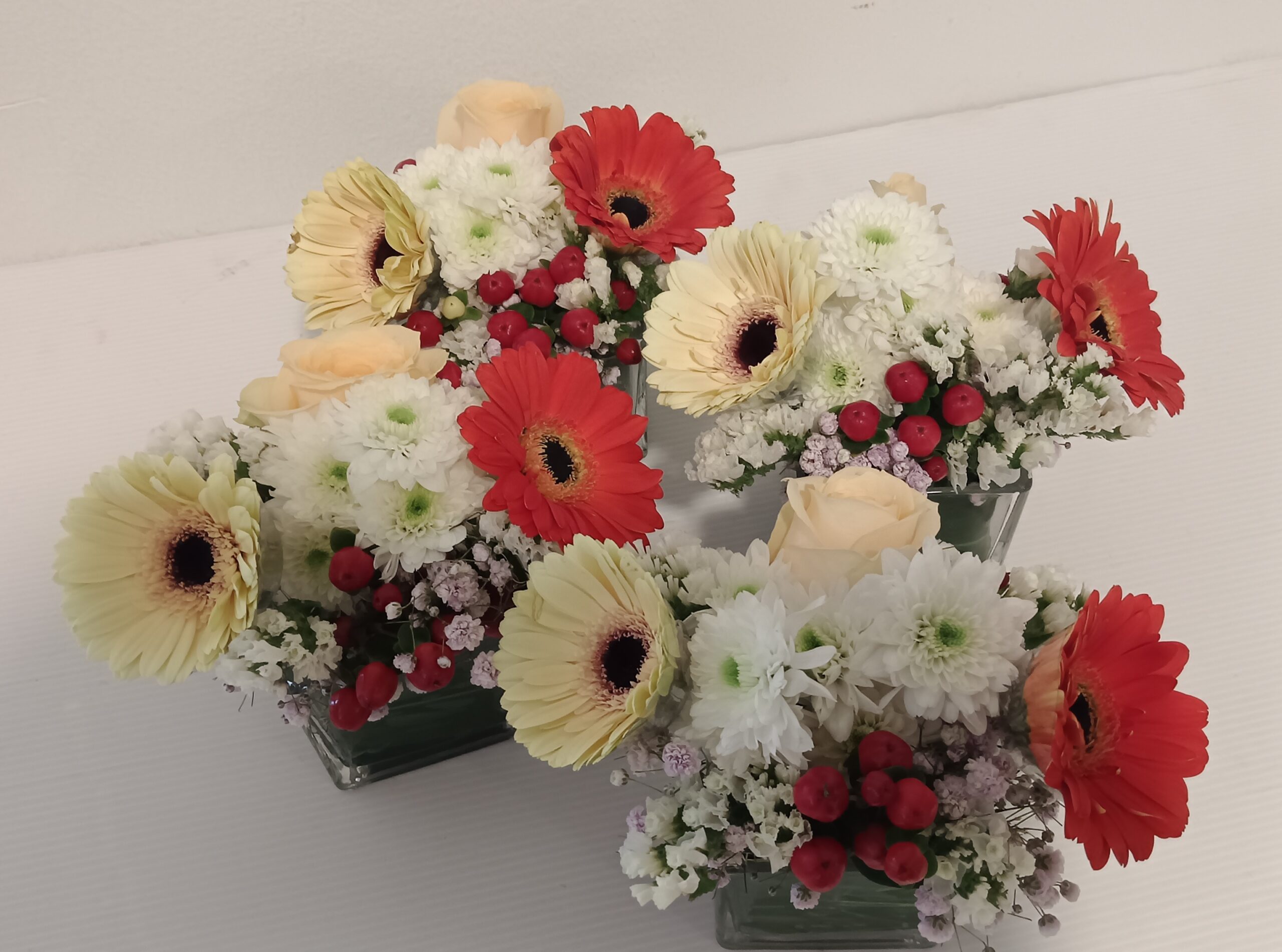 As shown 4 units of small vase arrangement. Preferably order comes in 3 days in advance before delivery date.